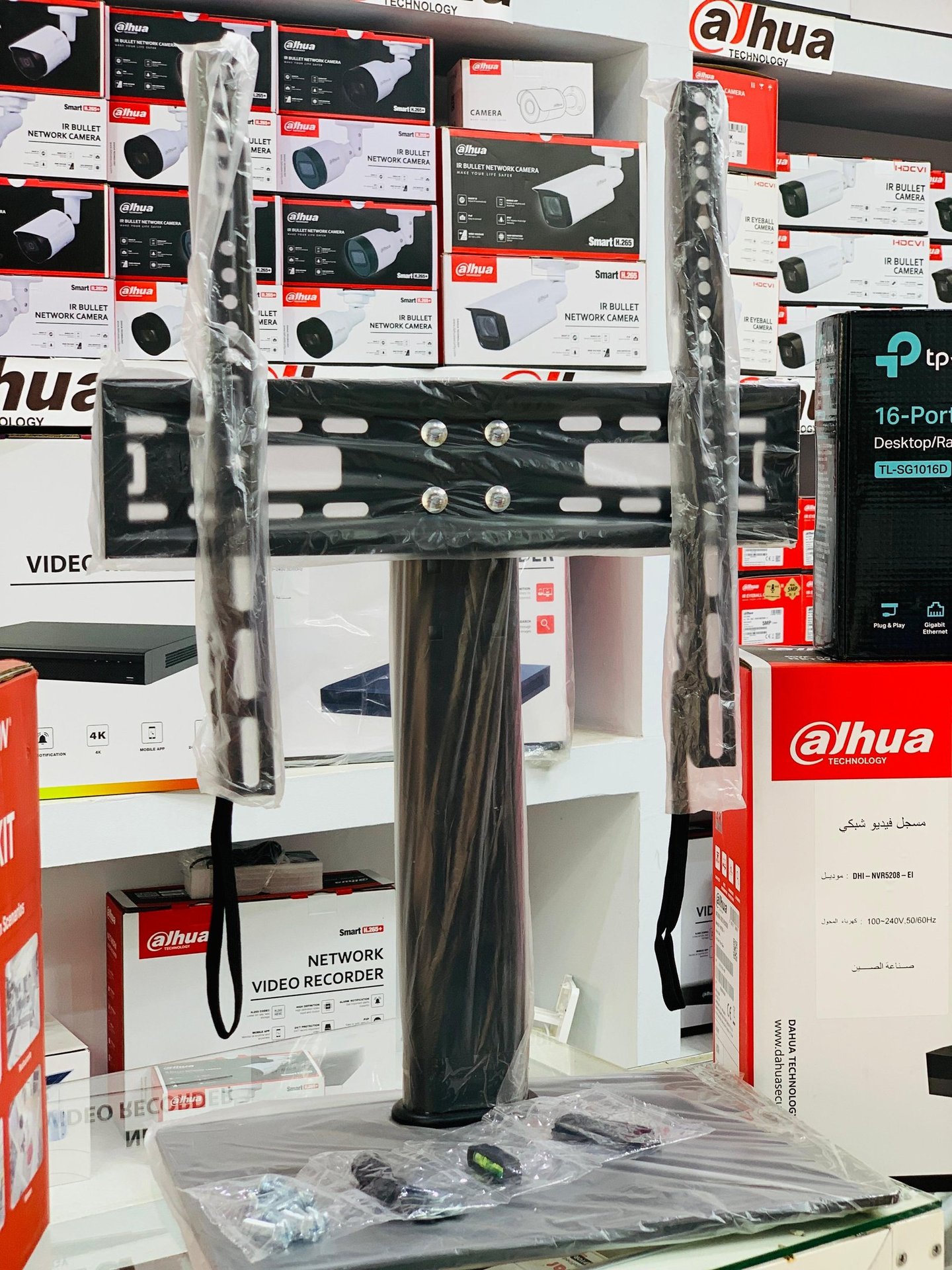 الحامل الخاص بالطبق حيث يمكن أن يتم تثبيت الحامل على الأرض في مكان مفتوح أو حتى على أي من الجدران المتواجدة في مكان غير مغلق.
